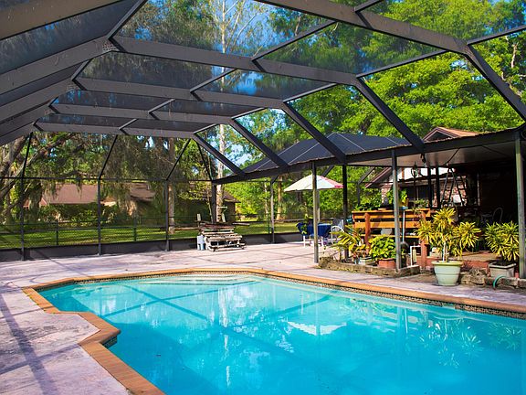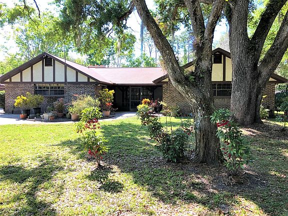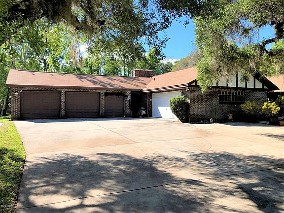 Spacious 3 bedroom, 2-1/2 bath home sits on a private 1 acre wooded lot in Ormond's Riverbend Acres subdivision. Plenty of room for your toys in the 4-1/2 car garage. Great opportunity, this home is ready for your personal touches. Large family room has a brick, wood-burning fireplace and quality wood paneling, thick terracotta tile throughout. Eat-in kitchen includes a center island with cook top, double ovens, plenty of cabinets, large pantry, brick office nook. New roof in 2018, solid wood doors, formal living room, separate dining room, front entry through screened porch, inside laundry room, newer zoned air conditioning system, large rear screened porch, shed, wood deck, hot tub, security system and in-ground pool surrounded by 1,950 square foot screened enclosure. Bring all offers