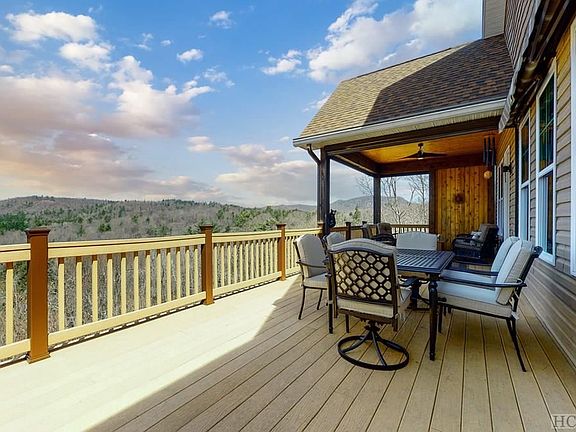 You will never want to leave this beautiful upscale home just a few minutes from downtown Highlands! The exceptional mountain views and evening sunsets from the spacious deck will relax and soothe you. The kitchen, dining, and living area flow effortlessly together, allowing easy entertainment of family and friends, while large windows provide dazzling mountain scenery. Main level living provides ease of use and guests will enjoy privacy on the terrace level that includes two guest suites, a large family room, and a covered porch with lovely mountain vistas. Some additional features include: pet fencing, a generator, awning and electric shades on the deck, climate friendly exterior siding plus a gated entrance. Main level conveniences include a large master suite with deck access, a laundry room with ample storage, a guest powder room, and an attached double garage. Offered furnished with a few exceptions.