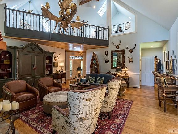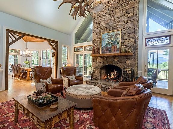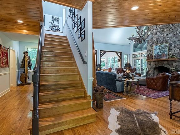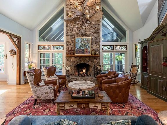 What a truly elegant home ! This Cedar Ridge Estates home sits on 3.5 acres has it all, including a a great yard with a fire pit and view of Whiteside Mountain. No detail of this smart home has been overlooked. Enter the foyer on the main level and take in the stack stone gas fireplace, post and beam accents, stunning antler chandelier and the charming screened in porch with another fireplace. The master bedroom and bath (has heated tile floors) is also on the main level. The kitchen has textured granite countertops and new updated appliances. Don't miss the Butlers Pantry, built in desk and second screened porch off the kitchen to enjoy dinning on. Upstairs you will find 2 en-suite bedrooms and a loft, perfect for an artist or little ones to play. Downstairs basement area is "The Club Room" complete with log cabin siding, another fireplace, a built in bar, a wine cellar with capacity for 300 bottles, a gorgeous custom cabinet that serves as a coffee station, a third screened in porch and 2 bonus rooms for extra space. Your guest will truly be spoiled. in 2019 the roof was replaced with a new synthetic slate, tile and metal roof. The garage has 2 new doors and motors for the 2 car garage. There is a wifi thermostat , zoned HVAC and heat registers, electric water shut-off system, alarm system with camera and encapsulated crawlspace. Minutes from shopping and dining. Furniture and furnishings are negotiable.