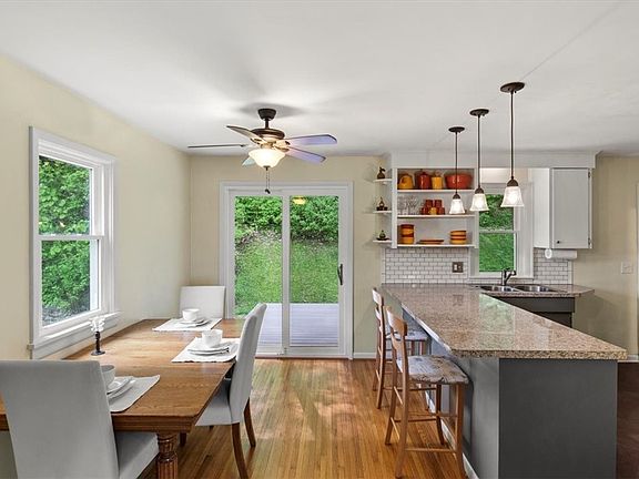 Welcome to this adorable Ranch located in Fairport with Fairport Electric! A spacious living room with a beautiful new updated fireplace soaks in the morning sun. A combined eat in kitchen has a peninsula island that allows ample amount of space for entertaining. The sliding glass door leads you out to the new Trex deck and a private wooded backyard. 2 bedrooms with large closets and a bathroom completes the main floor. A partially finished basement is perfect for a rec room or work from home office. There is a laundry room and separate workshop and storage room. Furnace with UV filter was cleaned and inspected this month. New septic tank 2012, Pace windows 2022, hot water tank 2022, insulation 2014, glass block windows, gutter guards, freshly painted exterior and freshly sealed driveway to list major improvements. Any offers will be reviewed on Monday, May 22nd at 2pm.