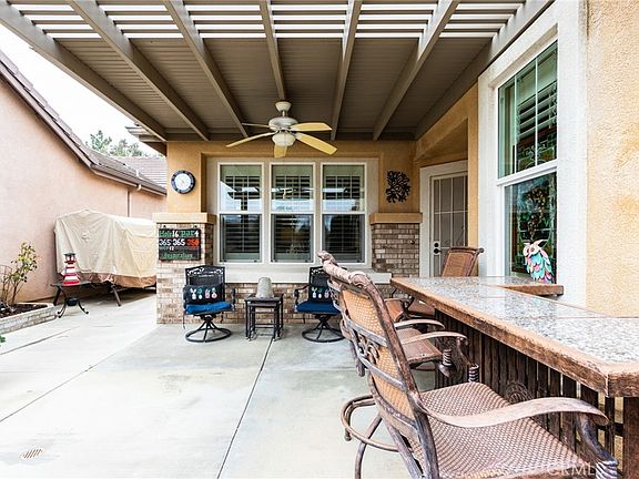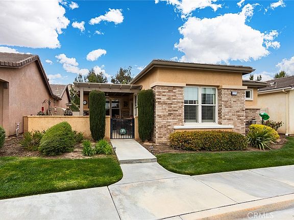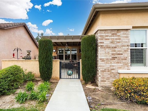 Home is located in the Four Seasons Resort, which is a gated senior community. This home has a very open floor plan ,known as the Monarch 3, and has 2 bedrooms,2 full bathrooms and an office/den. You enter into the Great Room which allows plenty of room to entertain family and friends. The Great room has plantation shutters and new wood flooring. The kitchen has granite counter tops with a large center island, breakfast bar and pantry. There is plenty of counter space and cabinets. There is a Large primary bedroom with a walk-in closet, double sinks and new carpet. There is a nice guest bedroom and bathroom and an additional room which could be either an office or den. The home has ceiling fans, plantation shutters throughout the home, an indoor laundry room for your convenience and direct garage access. There is a Large Courtyard at the front of the home with an alumawood cover creating a nice outdoor sitting area to relax and take in the views of the San Gorgonio Mountains. Four Seasons has 3 large clubhouses with pools, spas, sauna, gyms, tennis, pickle ball courts, movie theatre, hair salon and lots of clubs to join. Not to forget about the many walking trails, tree lined streets and beautiful landscaping.