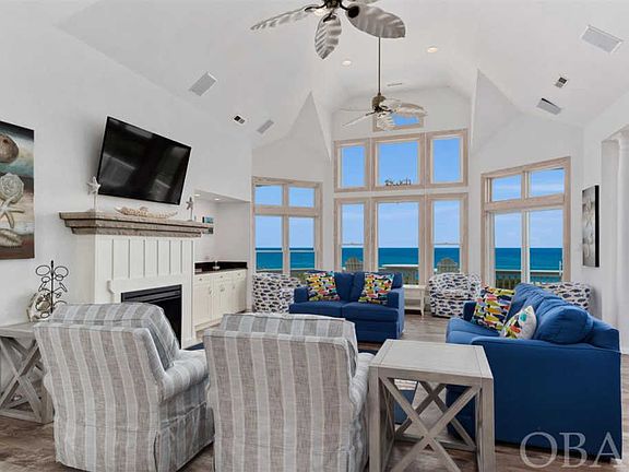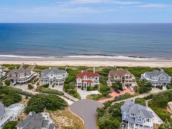 Impressive seaside estate available for the discerning buyer looking for spectacular ocean views, open flow reverse floorplan, spacious living spaces, private pool, and the desirable Pine Island community location. Offering over 5,000 square feet of oceanfront luxury, this vacation property features 8 bedrooms including 7 Masters, 8.5 bathrooms, game room with kitchenette, a 16x36â oceanfront pool and hot tub, private boardwalk to the beach, and breathtaking ocean views. The top level of this home showcases the stunning ocean vistas. Large windows and multiple glass sliders bring in not only natural light but the endless Carolina blue sky. The open floor plan highlights those views from the spacious family room with gas fireplace, to the comfortable dining room with sunporch access, and into the upscale kitchen where furniture front cabinetry and granite countertops compliment the sleek look of the stainless-steel appliances and breakfast bar. The adjacent sunroom is a favorite spot for more intimate dining, relaxing and board games. The first of the Master en Suite bedrooms is also found on this level. This large King bedroom with ocean views has a private bath and sundeck access. On the mid-level there are four more spacious Master en Suite bedrooms, each with their own covered deck access and private bathrooms. On the ground level you will find the remaining 3 bedrooms- 2 en Suite Masters and one guest room- along with the over-sized game room with kitchenette and another full bathroom which has access from the pool area. This level is bright and welcoming due to the generous windows and glass doors, and the easy-care floors take the worry out of wet feet from the pool or tracking in sand from the beach. The eye to detail continues outside this lovely home. The private 16x36â gunite pool with plentiful decking, makes room for a large gathering to soak up the OBX sun without feeling crowded. Expensive decks accessible from all levels of the home offer both sun and shade as well as additional spots to soak up those ocean views. And heading to the beach is a straight shot from the private boardwalk off the pool. This is truly a vacation home that is a favorite with guests as seen in the robust rentals. The attention to detail, impeccable condition, and desirable location and amenities of Pine Island all add value for the next lucky owner of this lovely estate by the sea.