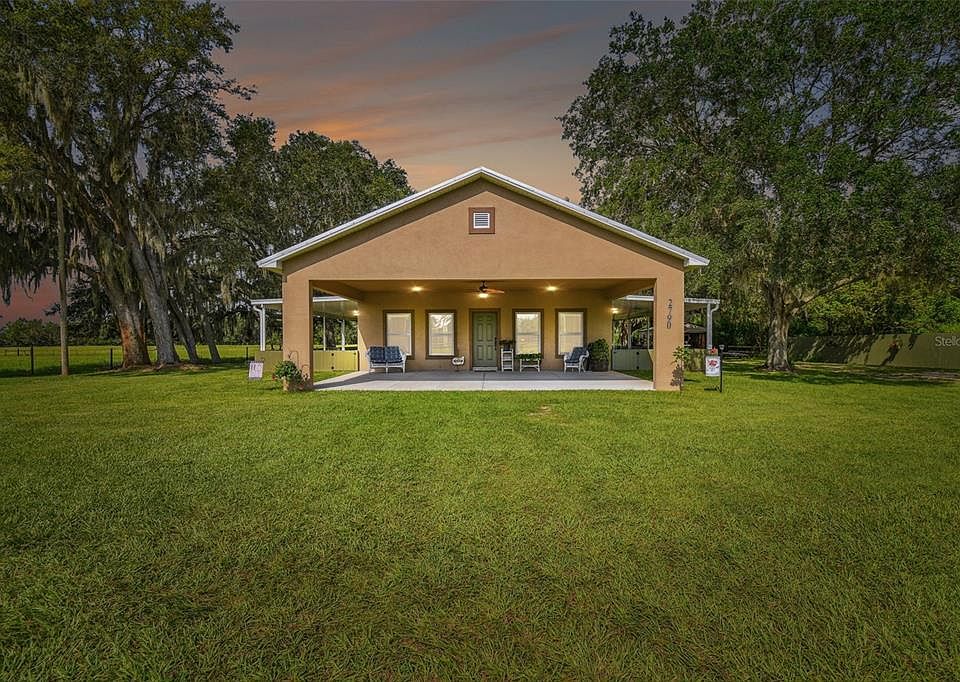 Welcome to 7 OAKS Ranch, a 5-acre Central Florida oasis! Pristine 5-acre property nestled in the heart of Central Florida. This BRAND NEW CUSTOM 2-bedroom, 2-bathroom all-block home offers a wealth of indoor and outdoor amenities in a prime location. Interior features SmartCore waterproof, highly durable flooring that flows throughout the open living spaces. The centerpiece of this home is the gourmet kitchen, complete with a 3x6 island featuring electric outlets. Samsung appliances, including an oversized double-door side-by-side stainless steel fridge, dishwasher, oven, and microwave. Custom touches such as a unique backsplash and stunning granite countertops, crafted from golden marble and granite, create a functional yet beautiful space. Both bathrooms and the laundry room feature 3-dimensional porcelain tile flooring, offering both style and durability. The interior is adorned with barnwood wainscot and custom leaf ceiling fans, contributing to a cozy and inviting atmosphere. The nine-and-a-half-foot ceilings throughout the home provide a sense of openness and spaciousness, while premium Tough R insulation and 14 inches of fiberglass insulation in the ceiling ensure exceptional energy efficiency and year-round comfort. A wall-mounted 50" TV awaits your entertainment needs, and furniture is negotiable for a seamless move-in experience. Step outside to over 2500 square feet of roof-covered open verandas. The property is secured by outstanding 4-board fencing, featuring treated 4x4 posts set in concrete. A pristine water well is located on the property. Ascend to the 'Skydeck,' perched approximately 75 feet above grade, and experience breathtaking 360-degree views of the surrounding landscape. The ground-level area around the Skydeck features a recreational space and a private campground, complete with a serene creek, a charming walk bridge, and neatly stacked oak firewood. This campground offers a unique opportunity to connect with nature, whether for a peaceful retreat or outdoor adventures. For added functionality and enjoyment, the property includes a golf cart, utility trailer, and a Silver Eagle Dixie Chopper (60-inch cut). For those with hobbies and projects, the 20x25 barn and 12x30 shed provide ample space for equipment storage and workshops. Home features a brand-new metal roof, enhancing the property's aesthetic appeal while ensuring its durability and longevity. The home itself is constructed with all block walls and finished with stucco. The land itself is incredibly fertile, verified by the University of Florida, Gainesville, eliminating the need for any soil amendments. You can grow your favorite crops year-round, with lush pastures providing high-quality Bahia grass for livestock. Say goodbye to purchasing hay for the past 10 years. Beyond your ranch lies the breathtaking Peace River Canal, with its lush foliage and diverse wildlife. You own the land clear to the midway point of the river, offering hunting opportunities for those who choose to explore. Whether you're seeking the tranquility of countryside living or the excitement of coastal adventures, it's all within reach. Don't miss your chance to own this exceptional ranch property. With its unique blend of modern comforts, natural beauty, and unbeatable location, 7 OAKS Ranch is truly turn-key and won't be on the market for long. Schedule your viewing today and turn your dream of Florida ranch living into a reality.