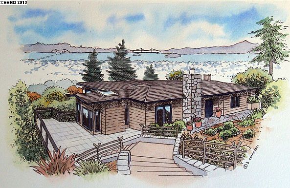 Almost hidden from the street in a coveted nrbhd with max. privacy and spectacular panoramic Bay views is this charming house. Owner architect has made many improvements over the last 39 years. All the rooms except for 1 bedroom have views. Gorgeous living room. w/rdwd.walls & ceiling, updated kitchen & baths.
