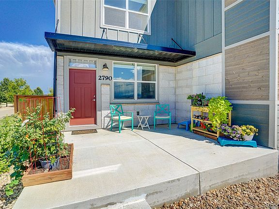 Start your day with coffee on the front porch while taking in breathtaking, unobstructed mountain views, and unwind in the evening with stunning sunsets. Upstairs, you'll find three bedrooms, two full baths, including a primary suite with a walk-in closet, and a laundry closet with a washer and dryer included. Situated on a desirable corner lot with partial fencing, this home is low-maintenance and offers excellent sun exposure—perfect for a small vegetable or flower garden. The alley-access garage provides additional storage, and the crawlspace is easily accessible. Enjoy fantastic community amenities, including two dog parks, a community garden, walking trails, pickleball and basketball courts, and a park. An optional pool and clubhouse are also available. Conveniently located near the rec center, TPC Golf Course, Highway 287, and just minutes from Loveland, Berthoud, Longmont, and a variety of retail, restaurants, and shopping destinations.