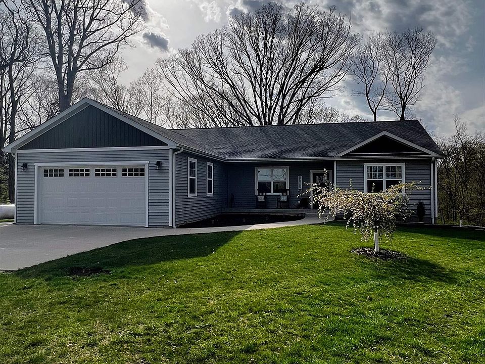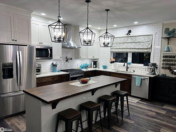 Peaceful retreat surrounded by mature trees on 6.22 acres. Built in 2018 this stunning home offers a split bedroom layout. The primary suite includes a walk-in closet & private bath with walk-in shower, dual vanity & heated floors. Open concept kitchen/dining/living room make it ideal for gatherings. Kitchen boasts two tone stacked cabinets, quartz countertops, & classic subway tile. Unique island top, dining table & fireplace mantel custom made from white oak trees harvested during construction. 3 season room surrounded by windows adds 320 sq ft. Laundry/mud/craft room just off the attached 2 car garage with new epoxy floors. Finished lower level with large family room for entertaining. Garden level windows in the lower 2 extra bedrooms & bath. Detached 4 car garage/heated shop with 10’ doors, upstairs & lean to. Whole house backup generator. Danville School District. Property borders shared pond & access to 2nd pond. Fiber Optic Internet. Owner is licensed RE agent in Iowa.