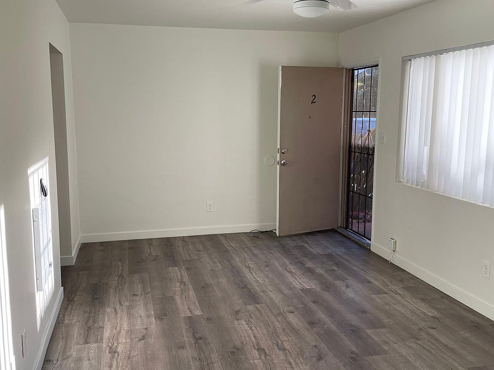 Owner pays for water/trash/sewer. Tenant responsible for gas/electric and internet/cable. PLEASE DO NOT CALL. We invite you to join our other happy residents and send an email to receive our pre-approval questions. This one won't last, so do not wait to schedule a showing for this remodeled 1 bath studio apartment! This first floor corner unit is deceivingly spacious and a great blank palate to express your personality and style. You will be impressed with the updated modern, clean look: luxury vinyl plank flooring throughout, bright white kitchen cabinets, quartz kitchen countertop, new bathtub, tub tile, vanity, vanity quartz countertop, new appliances, fixtures and lighting, and you will be pleased with the generous amount of storage space the hallway built-in shelves provide. The property is quiet, well maintained, and ideally located: easy access to the 94/5/805/15 freeways; walking distance to all the shopping/bars/restaurants on 25th Street in Golden Hill and minutes from Downtown. Owner pays for water/trash/sewer. Tenant responsible for gas/electric and internet/cable.