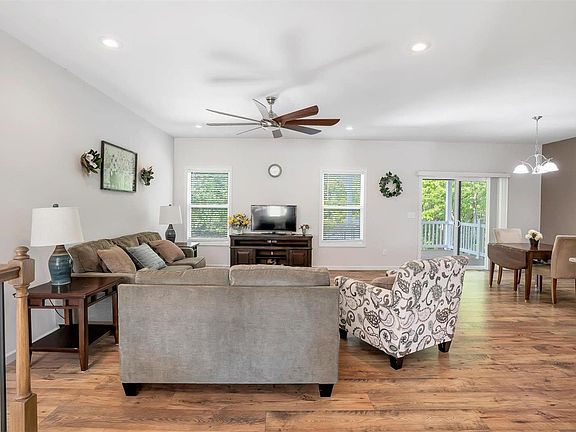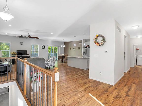 Welcome home to this stunning ranch home on a premium lot in the highly desired Stone Crest subdivision! As you step inside this home you will notice the attention to detail & quality. The home offers a spacious, split bedroom floor plan with 9' ceilings! The kitchen provides an island, solid surface counters, tile backsplash & nice appliances. The breakfast area has convenient access to the covered composite deck that overlooks the fenced in yard backing to trees & woods making this a private lot. An additional flex room can be used as a formal dining room or an office. The master bedroom offers a walk in closet & ensuite bath. There is a main floor laundry room & 2 additional bedrooms each with walk in closets to complete the main level of this home. The 9' walk out basement offers potential to finish & add 2 more bedrooms as well as another bathroom. Located within walking distance to parks, tennis/pickle courts, lake access, shopping, theater & highway for easy commute!