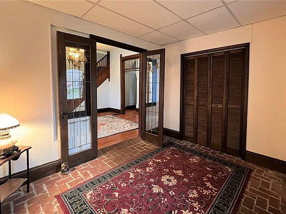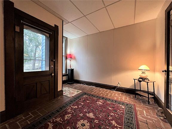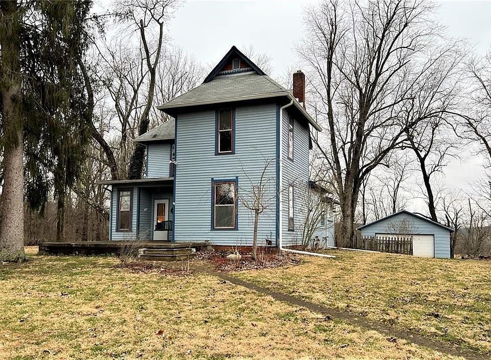 A beautiful Victorian home perched on a two-acre lot overlooking the hillside. This home offers the charm that is missing in most homes with some updates including a newer gas furnace (dual electric & gas) & heat pump. The home has a newer updated breaker panel and some plumbing updates too. Hardwood floors are accented by the original woodwork, tall ceilings, and charming cubby holes throughout. The primary bedroom is on the main level with two large bedrooms above. A huge sunroom offers a view of the back forty as well.