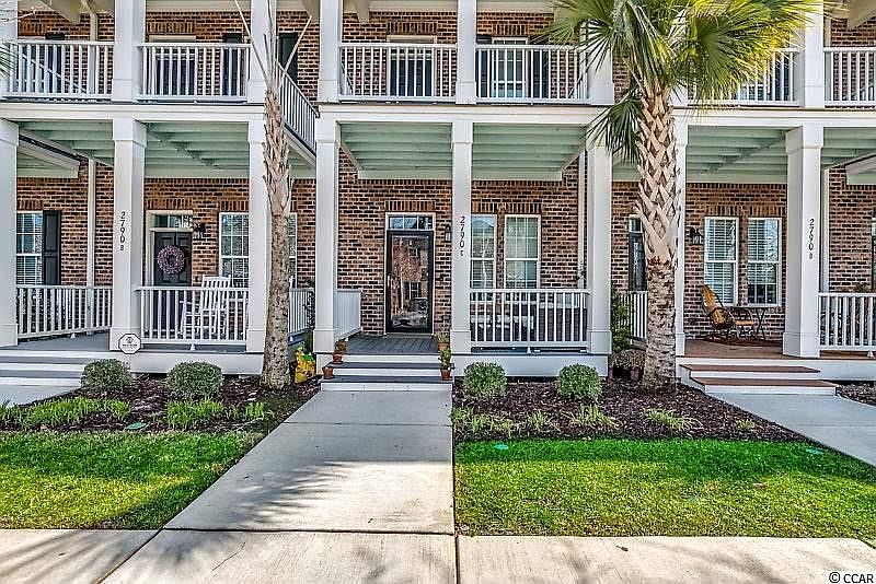 Unique Market Common townhome! This 2 bed, 2.5 bath townhouse is the only model of its kind currently available. The inside and outside of this property are equally as aesthetic. Entering the home you find the open living room and kitchen which feature hardwood flooring, granite counter tops, tile back splash, stainless steel appliances, & crown molding. The unit includes a balcony providing relaxing views of the Market Common, as well as a back patio/walkway that allows you to walk to the stores, restaurants, coffee spots, and bars of the community in seconds. The two spacious bedrooms are perfect for a small family or roommates. The master bathroom features a standing shower and separate bathtub, as well as granite counters. Walking out the back door, you find a small patio that leads to a walkway that will allow you to arrive at the stores, restaurants, & attractions of the Market Common in seconds. Private one car garage.