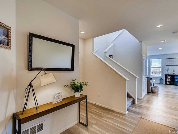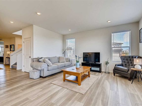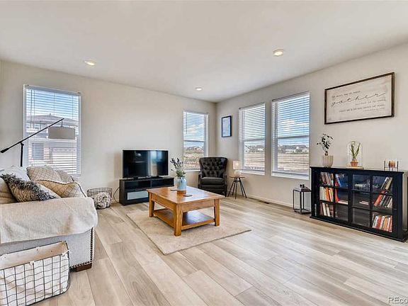 Buy *NEW* without the wait of building in sought after "The Villages at Prairie Center"! This 2019 Newly constructed KB Home has been briefly lived in and in brand new condition. This home is located on one of the few large corner home-sites. Your new home will welcome you with a great foyer area that opens into the family room and kitchen which boasts quartz counter tops and a convenient island. You will be able to work from home in your main floor den/office with views of the mountains, and have plenty of room upstairs with a large loft space and three bedrooms. The back yard has been fully fenced recently. Located just seconds away from the Prairie Center shopping district and minutes from Barr Lake State Park!