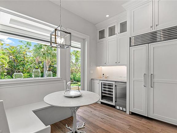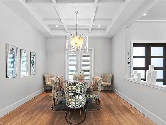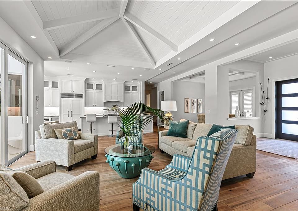 WEST OF CRAYTON, QUIET STREET. This beautiful contemporary home has a master suite and two guest suites on main level with second large master suite with bay views, wet bar on the second level. This home has upgraded finishes: wide plank wood floors throughout, custom cabinets, granite and marble counter tops. You will enjoy the outdoor living with an over-sized pool deck, blue lagoon gas heated pool, spa and outdoor fireplace. The home is available furnished and the kitchen is fully equipped, includes top-of-the-line appliances and a small wine cooler. Private beach access on Moorings. Walk-in distance to the Venetian Village with its fine restaurants and upscale boutiques.