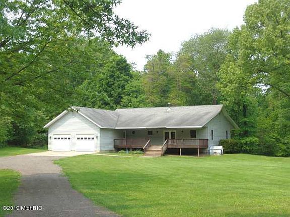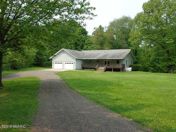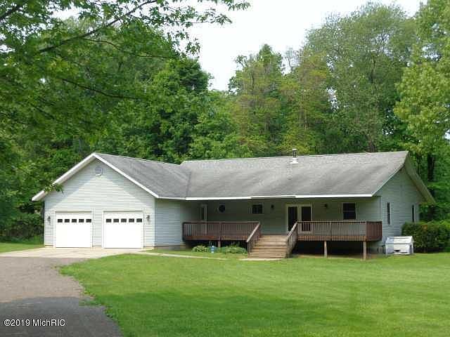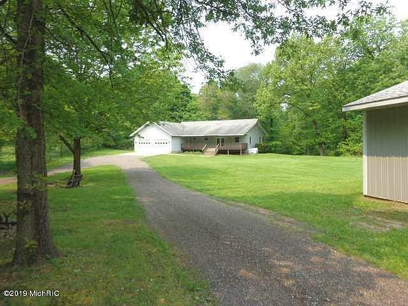 Hunters & or nature lovers PARADISE !!!! Wonderful private 4 bedroom 4 bath ranch on 24.2 acres ,mostly wooded, with over 3300 sf. of living space. Nice full finished walkout basement with a wood burner, a bedroom and full bath. Large 2 car attached garage and unique cantilevered full length front & rear decks where you get awesome views of deer & wildlife. Home also features high e. gas furnace, central air & 1 year warranty. But wait! On the property is a huge 44 x 64 heated pole building, Every man's dream! The pole bldg. has a fabulous workshop, bathroom, 220 electric, full air compressor lines, paint booth & more. To much to list.