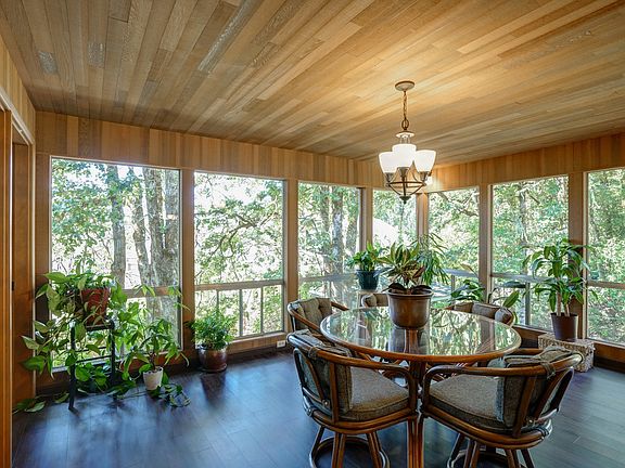 Accepted Offer with Contingencies. Relax in tranquility in this two level 4BR+ home with master suite on the main. Surrounded by lush foliage and a potential view of the Coast Range, this home on .44ac sits tucked away in the trees while staying illuminated by oversized windows. Well thought out layout connecting the kitchen, dining room and living areas with an excellent flow and spacious feel. Watch the stars or track the snowfall in the master sunroom - two walls of windows and a paneled glass ceiling!