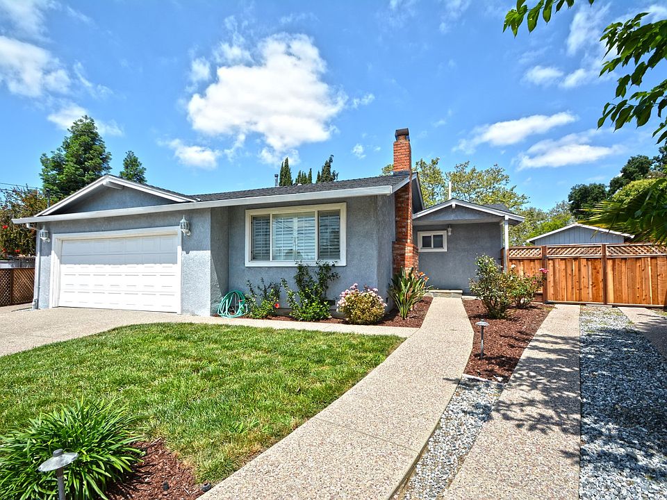 This desirable ranch style home situated in the Sun Terrace East subdivision features 3 bedrooms, 2 baths, 1103 sf of living space on an 8800 sf lot built in 1962. The charming floor plan is upgraded throughout with laminate flooring, custom interior paint, dual pane windows, plantation shutters, and baseboards. The living room features a tile surround wood-burning fireplace, picturesque window, and abundant natural light. The kitchen includes a granite slab counter, recessed lighting, oak cabinets, stainless steel appliances, tile flooring, and connects to the cozy dining area that has a patio door that opens to the lush backyard. The master bedroom provides a large slide patio door that looks out to the backyard that includes its own patio, and a ceiling fan. The master bathroom features a walk-in shower, newer light fixture, and tile flooring. Both bedrooms offer ample closet space and ceiling fans. The hall bathroom provides a newer vanity & light fixture with a quartz countertop, quartz surround shower over tub with a glass enclosure, & tile flooring. The backyard is an entertainer’s paradise that offers a gunite in-ground pool, two concrete patios, a lush green lawn, rose bushes, & citrus trees. This private lot with no rear neighbor features newer fencing, an attached 2-car garage as well as a detached 1-car garage with side access, & RV/Boat access. Close to parks, schools, shopping, restaurants, public transportation, and easy access to the freeway. This property is a must see!