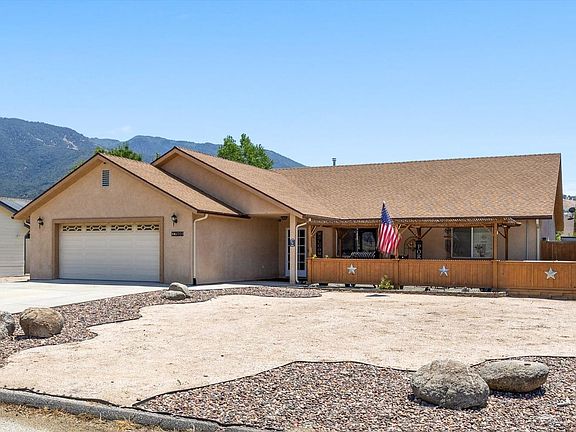 Welcome Home...is the feeling you get as soon as you drive into the beautiful community of Stallion Springs, Tehachapi and this home is conveniently located just as you approach Stallion Springs. Wide open spaces in front of home for the extra added privacy & great views. This well taken care of home provides a covered patio just off front yard leading into the large family room, large dining area with tiled floors and pellet stove, great kitchen with lots of storage, granite counters and center island, split wing design with primary suite on one side of home and two bedrooms and bath on the other. Primary suite is great in size, high ceilings, slider to backyard along with large walk in closet, bathroom with double sinks, tiled floors, stall shower, & soaking tub. Central Heat & Air, fenced backyard, Shed in back. 2 car attached garage just off large inside laundry room. This home is just waiting for you!