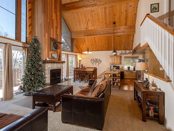 Have you been looking for your Turnkey Lake Arrowhead home with level entry, vaulted ceilings, and bedrooms on the main floor? You found it! This gorgeous 5-bedroom, 3-bathroom home shows pride of ownership throughout. This fully renovated home comes with low maintenance Hardi Backer siding and all the facia boards wrapped in sheet metal, showing the level of dedication these homeowners have had while owning this home. Inside, you're greeted with a spacious open floor plan containing beautiful exposed wood beams and vaulted ceilings. Custom kitchen with stainless steel appliances, built-in stovetop range, and a bar to eat breakfast at will satisfy any chef's needs. Enter the game room downstairs (plenty of room for entertaining) which also has a separate entrance located in the recent beautifully landscaped yard. A new driveway with custom rock work brings together the stunning exterior appearance. This is the Arrowhead Woods home you have been dreaming of!