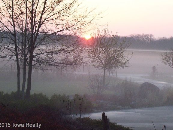 If you like privacy this is the place. Enjoy a gorgeous Iowa sunset as you relax with a cool drink on the front porch. Sit on the expansive deck in back. Look across the pond into the woods & enjoy the sound of silence. At dusk listen to the frogs & crickets. Look skyward on a warm summer day, you may spot a bald eagle or red tailed hawk. Enjoy a sunrise over the pond at daybreak. Everything birds & other animals need is just outside your door. 2 ponds, a ravine with running water, savanna, meadows, & gardens provide for frogs, butterflies, bees, and birds. A new faun taking its 1st meal, a turtle leaving the pond to lay her eggs, & the silent blue heron fishing the pond edge are a small part of what you can observe. Hike the trails through meadows, past the cedar grove & down the ravine amongst the oaks & other hardwoods. Stop by the wildflower garden & see how many species you can identify. When winter comes, enjoy the comfort of radiant heat in the ga