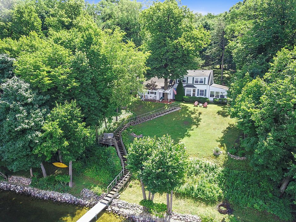 First time on market for this lake home owned by its original family for over 85 years, 177 feet of granite rock protected shoreline, Unfinished Basement, Many updates in the past 10 years to include Both bathrooms & Kitchen with granite counters/ upgraded cabinetry/ appliances/ flooring and light fixtures, Other updates include sunroom, exterior rock walls & New Pier tops. Living Room with impressive beamed ceiling and wood burning fireplace, good sized attic space for easy storage, oversized 2.5 car detached garage with a separate paved bonus parking area for guests, Sale includes: pier, boat lift, canoe, kayak, grill and smoker, Truly a turn key home because the furniture can remain, For another $80,000 can purchase shared ownership with neighbor of a 2.5 acre lot across the street.