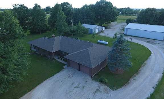 30 M/L Acres and Ranch Home located west of Brookfield on Business Hwy 36. 30 m/l Acres consist of currently hay ground, pine, fir trees, water is plentiful w/2 ponds and several outdoor hydrates. The home is approx. 3,200 sq ft of living space and boasts 4BR, 4BA. Living area and added rustic sun room for a substantial amount of family room! All solid 6 panel pale pine wood interior doors, custom oak kitchen and bathroom cabinets. Large pantry, lots of closets and storage. Master bathroom has an expansive soaking tub w/separate shower. The walkout basement offers a family/rec room w/a wood burning fireplace, bedroom, full bath and an ample amount of storage. 3 outbuildings, 3,200 sq ft, a 1,890 sq ft building and a 1,728 sq ft building that has heating/cooling and bathroom.