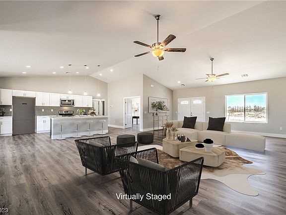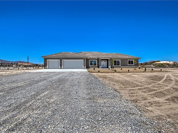 NEW BUILD with vaulted ceilings, open kitchen w/large island, primary suite with 5-piece bath, & den w/French doors. Desirable location, no HOA, nearly 1/2 acre, & stunning views of sunrise over Mount Charleston! Pick your finishes! Wood-grain flooring, granite tops, pendant lights over kitchen island, & gorgeous tile in primary suite walk-in shower! Kitchen offers eating nook, breakfast bar, walk-in pantry, & easy access to covered patio! Spacious primary suite has walk-in closet, linen closet, HUGE walk-in shower, and separate tub. This floor plan boasts 3 bed, den, 2 full bath, sink + cabinets in laundry room, 3-car garage, & landscaping on irrigation w/timer in front. Enjoy picking finishes, or walk through to plan your build on another lot! Valley offers 3 wineries, 3 golf courses, gaming, endless trails for hiking/biking/riding/ATV/Jeep adventures, and just 1hr to Las Vegas and an international airport!
