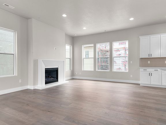 Experience elevated comfort and thoughtful design in this beautifully crafted Jackson Ballpark cottage home! Showcasing a stylish kitchen with warm cotton maple cabinets, quartz countertops, platinum gas appliances and a stylish tile backsplash. The interior features a mix of laminate hardwood, tile, and carpet flooring, enhanced by modern can lighting and two-tone paint. A cozy gas log fireplace adds warmth to the great room, while energy-efficient options and a tankless water heater provide long-term savings and convenience. Upstairs, the owner's bathroom is a luxurious retreat with quartz shower surrounds, a sleek Euro glass shower, and bold black matte hardware. Metal stair railings, large Craftsman base and casing, and a well-thought-out floor plan tie together this home's refined, contemporary aesthetic. Comes fully landscaped and is maintained by the HOA for hassle free, easy care living!