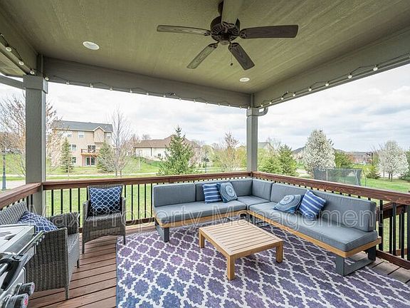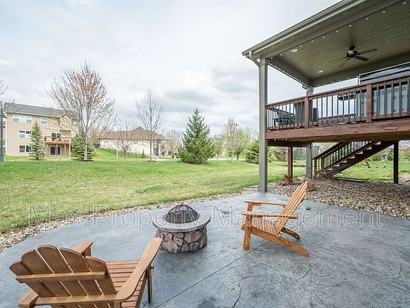Winfield Plan by Highland Development. Amazing neighborhood, cul de sac, large lot. Large pantry, center island kitchen, granite throughout, 2nd floor laundry room, tile shower and whirlpool tub in master suite, lots of crown throughout home, Kohler fixtures, 9 ft ceilings on first floor and basement, daylight windows in basement, stone retaining walls at basement windows, covered deck, belt driven garage door openers with battery back up, insulated garage, master and all wet areas insulated for sound. Finished garage, basement entertainment area including bar. Stamped concrete patio and custom water feature in the back. Lot edged by more than 20 trees and pines. Fresh paint inside, all new lighting and upgrades!