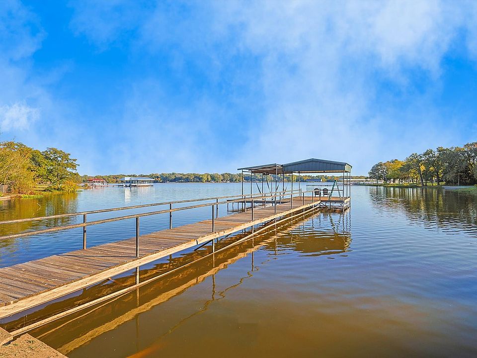 Discover serene lakefront living in this beautiful home on Lake Tawakoni. With a total of almost 1.25 acres, including .5 acre lot, plus an additional .75 acres of SRA lease back area, this property combines style, comfort, and breathtaking natural beauty. Inside, an open concept layout with large windows that floods the home with natural light and showcasing stunning lake views. Each bedroom is generous in size and storage, especially the master suite with an en-suite bath, a walk in shower and Large walk in closet. Outdoor living really shines in this home with a spacious back patio perfect for dining and relaxing, overlooking the landscaped grounds and lake leading to a private boat house with a slip and lift. Enjoy smores and nights down by the lake with a fire pit. The grounds are fully sodded with sprinkler systems for both the house and the lower part of the property This home is an idyllic retreat for those seeking a blend of luxury, the great outdoors and life on the lake.