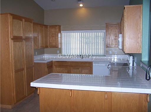 - Description: Breakfast Bar/Counter,Custom Cabinets,Lighting Recessed,Linoleum/Vinyl Flooring,Pantry,Tile Countertops