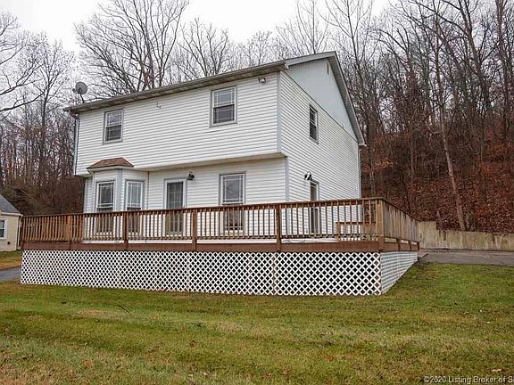 Adorable hillside home! This refinished cutie features 3 bedrooms, 2 bathrooms, and 1800 sq ft of living space. The first floor features a new kitchen with cooktop in the island, lots of counter space, and plenty of windows for views of woods out in front of the house. Great paint colors and floor. Move-in ready. Amazing unfinished space above the detached garage, with a walkway bridge from the second level of the house. This could be a great hangout space, extra storage, or flex space. The garage has built-in work benches and shelves that remain. Located on Hwy 111 just minutes from Sherman Minton bridge and downtown. Furnace, roof, hot water heater, and vinyl siding approximately 8 years old.