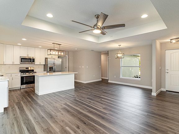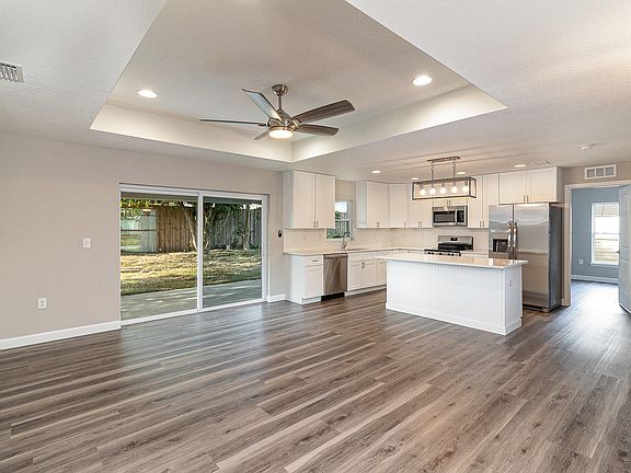 Discover modern conveniences in this brand new 4-bedroom, 2-bathroom home centrally located in the heart of Melbourne. NO HOA. Impact windows and a Carrier A/C system promises year-round comfort. Central kitchen is a cooks delight featuring quartz countertops, 42'' white shaker cabinets, white subway tile backsplash and stainless appliances. Outside, an oversized patio beneath a roof truss invites relaxation and entertainment. Don't miss the chance to make this meticulously designed home yours. Just minutes to Beaches, Highways, airport, restaurants, shopping and many large local companies.