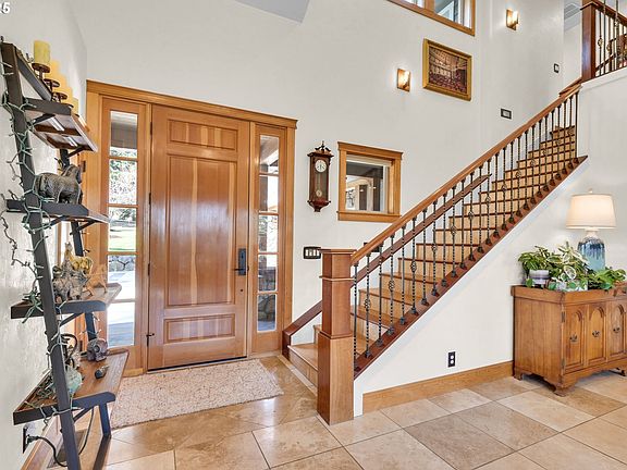 Stunning craftsman home in the Skyridge community, nestled in the lower Willamette Valley wine country (near Sweet Cheeks and Sylvan Ridge wineries, etc.), this immaculate 3,060-square-foot, 4 bedroom, 3 and 1/2 bath home offers unparalleled craftsmanship and luxurious living. From the moment you step inside, you’ll be captivated by the warmth and elegance of the home’s design. Custom finishes include exotic hardwood floors throughout, travertine tile, granite countertops, and natural cherrywood cabinetry, creating a seamless blend of beauty and functionality. This home features 3 cozy gas fireplaces, a built-in wine rack for connoisseurs, upgraded amenities throughout, and state-of-the-art stainless-steel appliances including a newly replaced refrigerator and oven. With solid core fir doors, vaulted ceilings, custom blinds, surround sound, and central vacuum on every level, no detail has been overlooked. Each window frames a breathtaking view of the towering trees on the property and throughout the neighborhood, ensuring you enjoy the natural beauty of the surroundings from every room. Outside, over an acre of property, including meticulously landscaped terraced beds with deer-proof flowering foliage and nearly 25 rhododendrons. Relax and entertain on one of the three decks, or explore the stunning garden beds and fruit trees—perfect for outdoor enthusiasts and garden lovers alike. A high-end HVAC system was installed in 2022, ensuring year-round comfort. A first-floor laundry room with a chute from the upstairs bedrooms makes doing laundry easy. All upstairs bedrooms include large walk-in closets with built-in custom cabinetry. The primary bedroom has a large ensuite w jacuzzi tub and beautiful double shower. In addition, there is a three-car garage, and another living space with a large bedroom and second kitchen area on the ground floor. With balconies, multiple fireplaces, and exceptional views at every turn, this home is truly a must see!