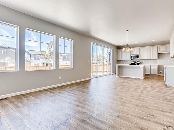 Brand new home available for move-in January/February 2021 in the Sky Ranch community. This beautiful home has amazing spaces that offer privacy and comfort! The main floor is an open floor plan concept with the dining, kitchen and great room all connected with a study at the front of the home for privacy. Upstairs is incredible with 4 bedrooms, a full sized loft and THREE full bathrooms! Luxurious finishes throughout including extended laminate wood flooring on the main level, beautiful white cabinetry throughout, 42" uppers in the kitchen, corian counter tops throughout and stainless steel appliances including the dishwasher, microwave and gas range. Walk out through the 8'X12' sliding glass door to your oversized covered patio and enjoy your fully fenced and fully landscaped backyard on a large, corner lot!