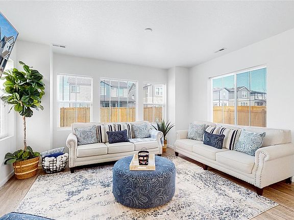 Why build new when you can buy nearly-new? This home is practically a model home located in the new Sky Ranch neighborhood of Aurora. The home features 3 bedrooms, 2.5 bathrooms, and a 2-car garage. The interior features modern updates such as large sliding door, upgraded laminate floors, stainless steel appliances, and a large living room with plenty of natural light. The updated kitchen provides plenty of cabinet and counter space, and a large island for entertaining. In addition, the primary suite is complete with a large shower, dual sinks, and a spacious walk-in closet. The exterior of the home has a greenbelt on one side, a fenced backyard and is perfect for entertaining guests or simply enjoying a morning cup of coffee. The area is being developed actively has all the conveniences nearby for your enjoyment. Check out the property website at: http://prop.tours/fco