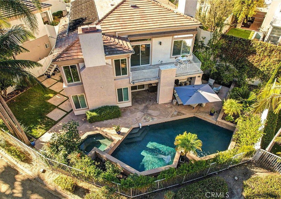 Nestled in the gated community across from Lake Mission Viejo, this stunning home has been completely transformed with over $200,000 in high end upgrades. Boasting 4 bedrooms, 2.5 bathroom and a spacious 3 car garage, this home features one of the largest backyards in the neighborhood, complete with a resort-style pool, spa, outdoor kitchen and shower. Step inside to discover 2,775 square feet of luxury living space, highlighted by a fully remodeled kitchen equipped with custom cabinetry, quartz countertops, and stainless steel Thermador appliances. The spa-inspired primary bathroom has been beautifully redesigned with an enlarged shower featuring multiple shower heads, freestanding tub and a massive walk in closet with custom organizers. Additionally, a second closet was added to the primary suite. All bathrooms have been remodeled with new toilets and fixtures. Throughout the home you will find luxury vinyl flooring, upgraded hardware, and double-pane windows in the family room and bedrooms. the home has also been re-piped and includes a newer HVAC system. Smart home with LED lighting in the interior and exterior. There is also a retractable awning on the balcony where you can sit and relax enjoying panoramic views. As a bonus, you will enjoy membership to Lake Mission Viejo with access to fishing, concerts, sports courts, picnic areas, and more. This turnkey home is ready to make every day feel like a getaway!
