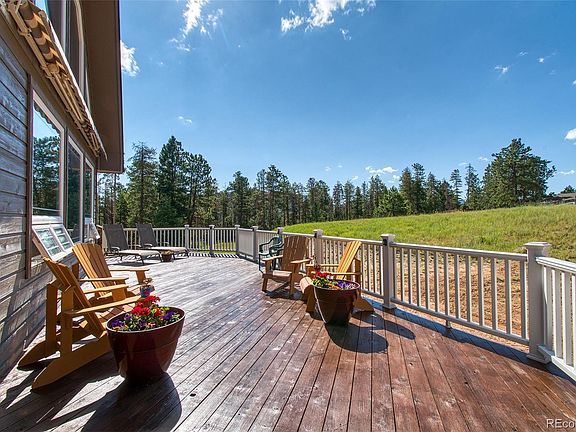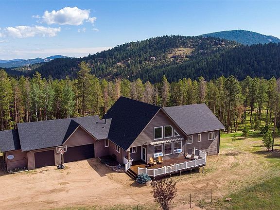 NEW ROOF, GUTTERS, STAINING, AND SEPTIC TANK! Dream of living in the mountains? Your retreat awaits! Beautiful, fire-mitigated, flat, usable property in a quiet neighborhood with easy access to 285. Close to Flying J Open Space with direct access from the subdivision. Wonderful kitchen with solid wood, maple cabinets, granite countertops, and glass tiles backsplash all in comforting warm tones. Kitchen opens to the living room with vaulted ceilings and lots of windows. Perfect for entertaining or relaxing in front of the gas log fireplace. Dual pane windows and new insulation keep this home warm and utilities low. Great location! 5 minutes to award-winning schools and groceries; 40 minutes to downtown Denver. Basement bedroom with private bathroom has previously been rented at $500 per month. Stubbed for another bathroom and lots of unfinished space gives potential for any of your ideas - gym, office, theater room.