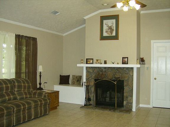 Drive a little & save a lot. Enjoy Harris County security & excellent public schools. The home has a new roof & HVAC and is freshly painted inside & out. All floors are solid surface ( tile & vinyl). It has a split bedroom plan and the master suite has his & her walk in closets and a jetted tub with heater. High ceiling in great room has a wood burning fireplace. It also has a rocking chair front porch & a covered rear patio sit on and enjoy.