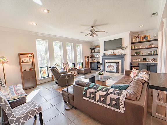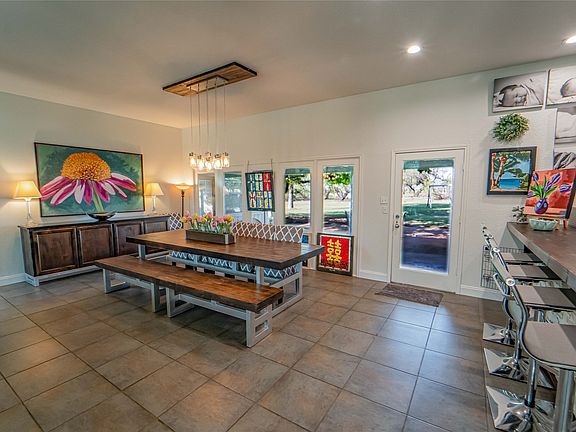 Elegant 4B3B Estate on 5+ Acres Adjacent to Golf Course-Luxury Living Just Minutes from Town! Enter this secluded haven, via a private lane, situated only minutes from shopping, schools & restaurants BUT outside the city limits! An oversized entrance foyer welcomes guests into a large relaxing family room boasting of WB fireplace, custom built-ins & lofty ceilings. Dine in the spacious formal dining area, featuring seating for 12-14 family & guests, a wet bar & expansive windows allowing abundant natural light to pour in, framing views onto the covered patio & extended courtyard, where al fresco dining & peaceful outdoor gatherings take place! Well-appointed and inviting, the kitchen with center island bar & cooktop, complete with wine fridge, flows into a unique hexagon shaped breakfast nook with vaulted ceiling & walled windows, maximizing natural light & gorgeous views! Retreat to a roomy primary suite which offers a cozy sitting area while the spa-like ensuite bath sports free-standing dual vanities, jetted tub, walk in shower, spacious built ins & oversized walk in closet. Three additional large bedrooms offer versatility for guests or home offices. Functional design includes generous cabinets & closets for storage, custom built ins throughout including built in pet crate & generously sized utility area. Entertain in style among the sprawling outdoor spaces including a covered pavilion with space for grilling, dining & lounging by the sparkling pool, equipped with water features. Mature shade trees & an inviting firepit area complete the perfect setting for outdoor entertaining! A 24x24 metal & wired workshop, with concrete flooring, provides space for projects & additional storage. Meticulously maintained with recent renovations & upgrades, including windows, this property presents a rare opportunity to own a home that combines classic beauty, modern luxury and an unparalleled location! Call today to schedule a private tour & let's unlock your next chapter!