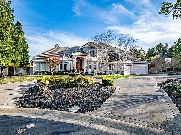 Beautiful French Country inspired estate home on premium, pie-shaped lot measuring almost an acre at the prestigious gated Ruby Hill golf course community with Jack Nicklaus designed course. Very desirable floorplan features primarily main level living. Dramatic Formal Entry opens to elegant Living and Dining Room with gas fireplace and French doors, with views to the veranda and Backyard. Updated Kitchen features new high end stainless steel appliances, granite slab counter tops, center island, breakfast bar with seating, and Breakfast Nook overlooking the Backyard. Adjacent Family Room with raised hearth gas fireplace and soaring ceiling. Spacious main level Master Bedroom Suite with French doors to the veranda and his & hers closets. Updated Master Bath with his & hers vanities, soaking tub, and glass enclosed stall shower. Secondary main level Bedroom and Ensuite Bath. Executive Office with custom cherry cabinetry and French doors. Upstairs, two additional comfortably sized Bedrooms share full Bath with tub/shower combination. Bonus Room with hillside views. Additional amenities include hardwood floors throughout the main level, plantation shutters, crown molding, recessed lighting, ceiling fans, custom closets, interior/exterior speaker system, high ceilings, dual zone HVAC, main level Laundry Room, and so much more. Outside, private Entertainer's Backyard features pool-sized yard with mature landscaping and small producing vineyard of rare Cabernet Sauvignon grapes, built-in BBQ and covered patio, and outdoor fireplace. Circular driveway with fountain feature and motor court leading to three stall Garage. All this and resort style HOA amenities for monthly fee of $240, top rated Pleasanton schools, proximity to Historic Downtown, award winning Livermore Valley Wineries, Silicon Valley, and San Francisco.
