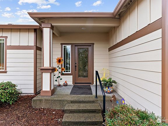 Welcome to this immaculate 1 owner Schneider home resale in the desirable Hawkesbury subdvn. This 3 beds 1.75 bath RAMBLER home is privately positioned in a cul-de-sac. It is conveniently located to all amenities and hwy 18. So close to everythng and yet tucked away from the busy streets. You'll be welcomed by real hardwood flrs upon entry to the living rm and kitchen. Enjoy open concept living! Spacious kitchen boasts slab granite island. Beautiful mantle on the living rm w/ built in bookshelf on the side, a floating fireplace, surround sound system & mounted tv (tv and mount stays). Primary bedrm w/ 5 piece bath and a walk in closet. When weather permits, you'll have a glimpse of Mt. Rainier from the backyrd. Amazing location! A must see!