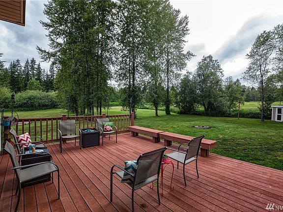 There's nothing left to do but pack the truck & move in! This better than new, stunning home, sits on a secluded 2.5 acre beautiful piece of property. New paint & carpet throughout, along with new stove, quartz counters & subway tile backsplash in the kitchen. Sit out on your low maintenance composite deck on a glorious afternoon bird watching or catching deer enjoying the apples & berries near by. Centennial Trail is adjacent to the property for a quick workout! Easy commute to I-5!