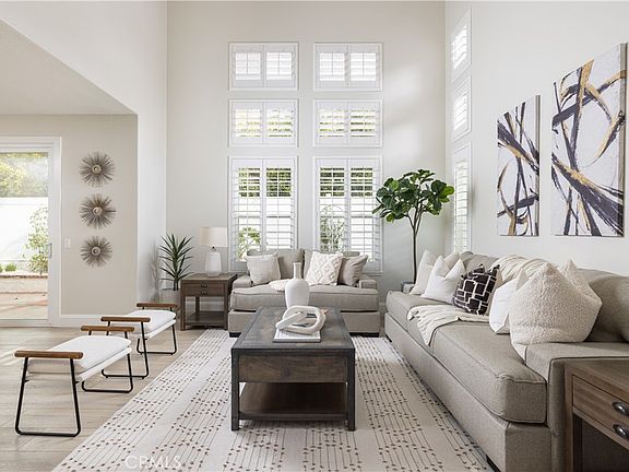 Welcome to this tastefully upgraded 4-bedroom, 3-bathroom home nestled in a coveted gated community in Mission Viejo. Boasting 2,409 square feet of luxurious living space, this home offers high-end finishes, thoughtful upgrades, and an unbeatable location right across the street from the Mission Viejo Lake. Step inside and be greeted by soaring ceilings that create an open, airy ambiance, enhanced by an abundance of natural light streaming through brand-new dual-pane windows throughout. The entire home has been updated with brand new floors and fresh paint, giving every room a modern and welcoming feel. At the heart of the home is the fully remodeled chef’s kitchen, a showpiece featuring sleek quartz countertops, a stunning glass tile backsplash, high end stainless steel appliances, custom cabinetry, and designer lighting. The seamless flow from the kitchen to the family room makes this space perfect for entertaining or quiet family evenings. As you make your way upstairs, the primary suite is a luxurious retreat with its remodeled spa-like bathroom, showcasing a massive walk-in shower with premium finishes and mood lighting. The secondary bathroom features a brand-new vanity for added convenience and style. Additionally, there are three spacious secondary bedrooms with loads of natural light. Practical upgrades abound, including PEX piping, a tankless water heater, a new HVAC system (just three years old), and an epoxy-floored 3 car garage with storage racks. The recently landscaped backyard offers a tranquil space to relax, entertain, or enjoy the Southern California sunshine. 27922 Muirfield offers exclusive amenities like a sparkling pool within the community and a lake membership to the beautiful Mission Viejo Lake where you can enjoy swimming, fishing, kayaking, paddle boarding, summer concerts and more. Don’t miss your rare opportunity to own this exceptional property!