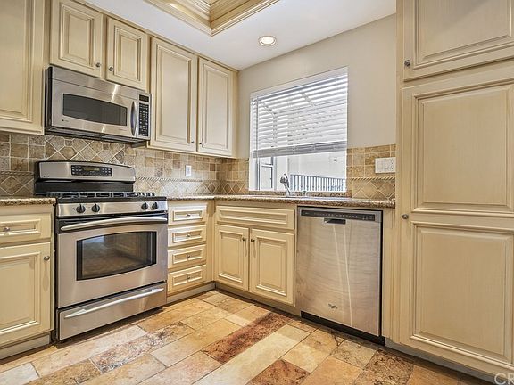 Beautifully updated Coral Gardens condo with 3 bedrooms and a loft! This home not only has a main floor master suite but also has a secondary bedroom on the main floor, another master suite on the second floor plus a custom loft! The loft can be used as a media room, office, or could be converted to an additional 4th bedroom if needed. Lots of upgrades and attention to detail in this home. Tumbled travertine flooring, custom glazed kitchen cabinets, custom stone back splash, stainless steel appliances, freshly painted in a tranquil tone, granite counters throughout, crown molding, custom banister, marble fireplace hearth, recessed LED lights for energy efficiency, LED lights for all other fixtures, custom stone tile in the shower and tub, modernized fixtures, a quiet front courtyard, a spacious back patio with room to BBQ and entertain. Coral Gardens offers a community pool, spas, tennis courts, and walking or hiking paths. Ownership also includes the Lake Mission Viejo membership where you can enjoy concerts, holiday fireworks, paddle boarding, and beach amenities. Close to shopping, restaurants, retail, and the 241 Toll Road. Coral Gardens is an exceptional community. This home is turn-key and ready for you to make it your home!