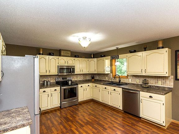 So much space inside & out of this four bedroom, three bath home that is situated on a gorgeous 5 acre parcel of land on paved roads. Open floor plan w/spacious kitchen & dining open to living, three bedrooms on main floor (master has private bath & two closets), & LL features family room w/wet bar, bedroom & bath, plus two large bonus rooms! Decks, two-stall attached garage, barn. Furnace 2017.