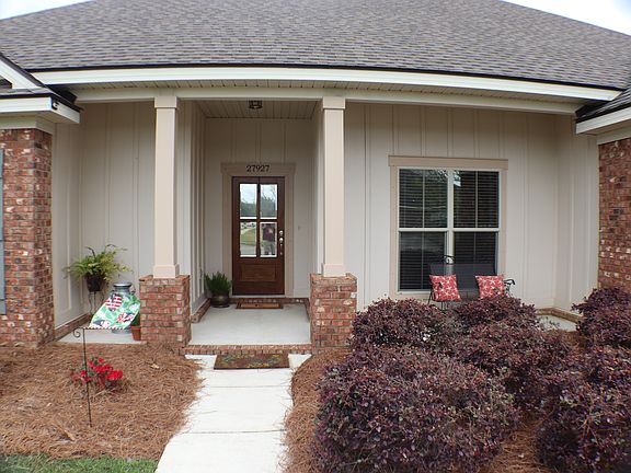 Like New Truland home in convenient Landsdown Subdivision just south of I-10 and Eastern Shores Mall. Open floor plan, kitchen features granite, SS appliances, gas stove, large pantry. Dining room and great room with gas fireplace. Split floor plan. Master suite includes double sink granite vanity, his and hers walk-in closets, large soak tub and upgraded tiled shower with frameless glass door. Fenced yard, large covered back porch. No homes behind.