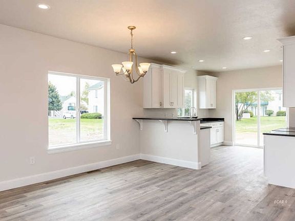 MOVE IN READY: Mt. Moriah Floor Plan; 3 Bedrooms 2.5 Bathroom floor plan with oversized guest bedrooms. Full Stucco Exterior. White Shaker soft close cabinets with 3cm granite in Steel Grey. Luxury vinyl plank flooring, upgraded carpet, ceramic tile. LED Lighting throughout. GE Profile Slate Appliances including Refridgerator. Brush Nickel finishes. Two tone paint, upgraded lighting and plumbing packages. Low-E high efficiency windows with fitted blinds. Built on a conditioned/heated crawl space. Front xeriscaping and rear fencing with side gate included. Upgrades include a tiled in master shower with double shower heads and frameless euro door. Double vanity with square sinks throughout. Raised bar in kitchen, corner fireplace with stone surround, matching wood mantle and granite hearth. Extra luxury vinyl plank floor in family room. Skimmed and painted extra deep garage with additional cabinet storage. Officer of Koinonia Construction is a NV Licensed Real Estate Agent.