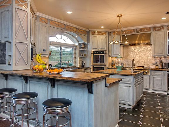 Spectacular Country French Estate Home that is meticulous inside! Stunning backyard complete with outdoor kitchen/BBQ area, fireplace, beautifully stamped patio areas, cascading waterfalls, Koi and water lilly ponds and breathtaking views on almost 3 acres. Gourmet kitchen with high-end stainless steel appliances, granite counter-tops, elegant cabinetry and large walk-in pantry. Formal living and dining room.