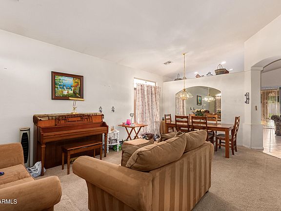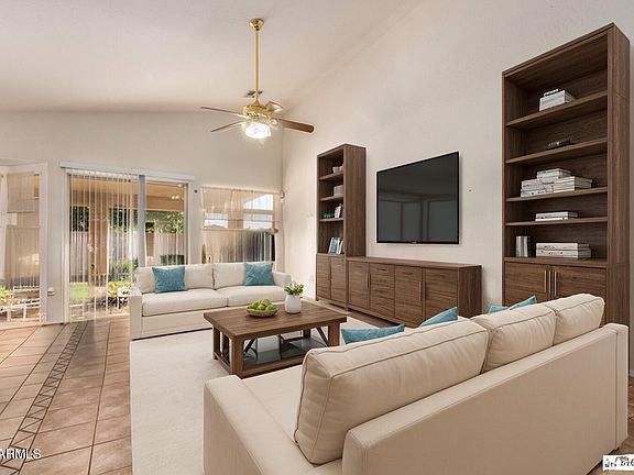 Welcome home! NEW AC(2 yrs old) This 4-bedroom, 2-bath residence boasts a 2-car garage and an impeccably maintained front landscape. Discover a welcoming living/dining room with vaulted ceilings, a soothing palette, clerestory windows for natural light, and soft carpeting. Gather loved ones in the great room, complete with sliding doors to the backyard for seamless indoor-outdoor living. The delightful kitchen comes with abundant wood cabinetry, recessed lighting, essential built-in appliances, a pantry, and an island with a breakfast bar. The cozy main bedroom offers an ensuite with double sinks and a walk-in closet. Enjoy breathtaking sunsets in the backyard with a covered patio and well-kept natural turf. Make this gem yours now!