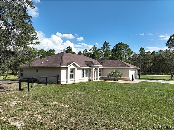 HERE IT IS!!!! YOUR OWN .99 ACRE WITH WOOD RAIL FENCE HAS NO-CLIMB WIRE FOR PETS. GARDEN IS ALIVE WITH PLANTS AND THEY LIVE BEHIND YOUR BEAUTIFUL 3 BEDROOM 2 FULL BATH HOME, BOASTING A SUNRISE VIEWING 14X18 LANAI. INSIDE NEW PREMIUM PLANKS AND CERAMIC THROUGHOUT. ENTER THRU COVERED PORTICO FRONT DOOR TO YOUR SPACIOUS 2138 LIVING & 2994 TOTAL SQ.FT.UNDER ROOF SANCTURAY OF A HOME. A SPECTACULAR FULLY OPEN EAT-IN KITCHEN WITH LONG GRANITE COUNTERED BREAKFAST BAR/ISLAND WITH ALL NEW APPLIANCES 2021, THAT SPILLS INTO TO FORMAL DINING ALSO TO OPEN GREAT ROOM & OFFICE AREA SO FAMILY IS IN VIEW & TOGETHER. ESCAPE OUT GREAT ROOM SLIDERS TO YOUR FLORIDA LANAI WITH NEW HOT TUB W/OUTLET WIRED IN TO SEPARTE SUBPANEL. EXTRA LARGE MASTERBEDROOM IS PROUD OF ITS GLASS WALK-IN SHOWER AND HEAVENLY GARDEN SOAKING TUB. GUEST ROOMS HAVE VIEW OF TREES,LAWN & REAR GUEST ROOM VIEWS ENORMOUS BACK YARD WITH GARDEN. SUNSETS IN THIS PRIVATE COUNTRY SETTING ARE WONDEROUS. FRESH AIR AND BEAUTIFULS DRIVES THRU ROLLING PASTURED HILLS ON YOUR DRIVE HOME ARE NO EXTRA CHARGE. 2 CAR GARAGE WITH OPENER LEADS INTO INSIDE LAUNDRY ROOM WITH UTILITY TUB. WELL & SEPTIC SAVE ON UTILITIES. RIVER LIFESTYLE KAYKING,BOATING SWIMMING ARE YOURS. THE AREA BOASTS Miles of walking & biking trails in Dunnellon local area, 3 state parks on rainbow river, boating on the Withlacoochee River. Convenience of shopping, doctors, and all the amenities of Ocala 25 minutes away. Gulf of Mexico waterfront dining in Crystal River just 25 minutes to the west. Every night is Solitude & Serenity. Schedule a Tour NOW.