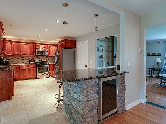Nestled into a quiet residential street, sits this 4 bed 2.5 bath cape with attached 1 car garage. Nice sized lot with a surprisingly private back yard. Hardwood floors throughout, even under the carpet! Amish built kitchen with granite counters, stainless appliances, and peninsula with built-in wine cooler. All bathrooms are updated and spacious. Lower level is finished with a walk out entry point. Perfect for that home gym, office, home-school space, or even easily converted into an in-law suite. Massive bedrooms, all with large walk in closets. This home has all the space you need and more!